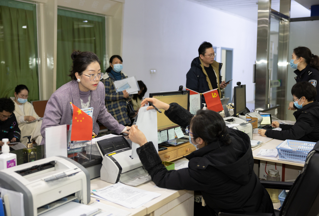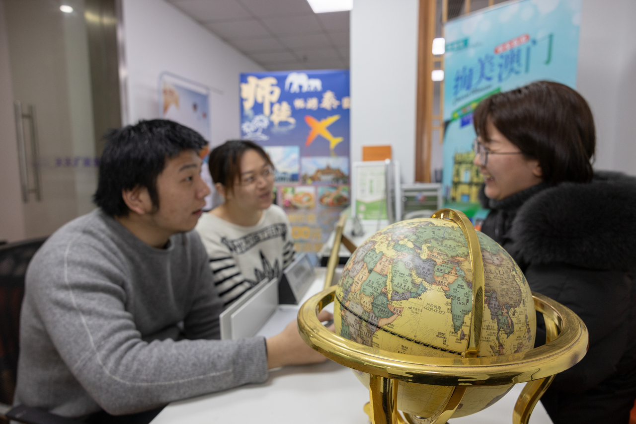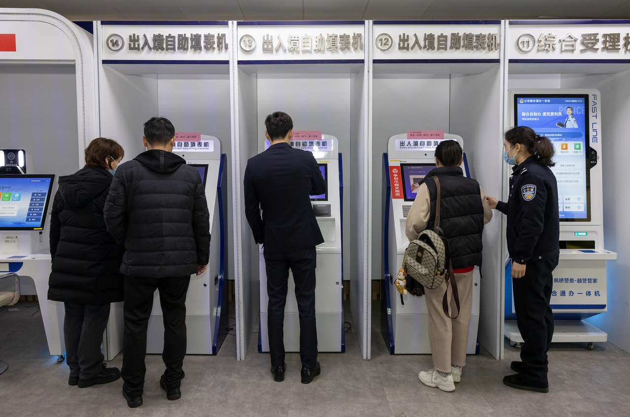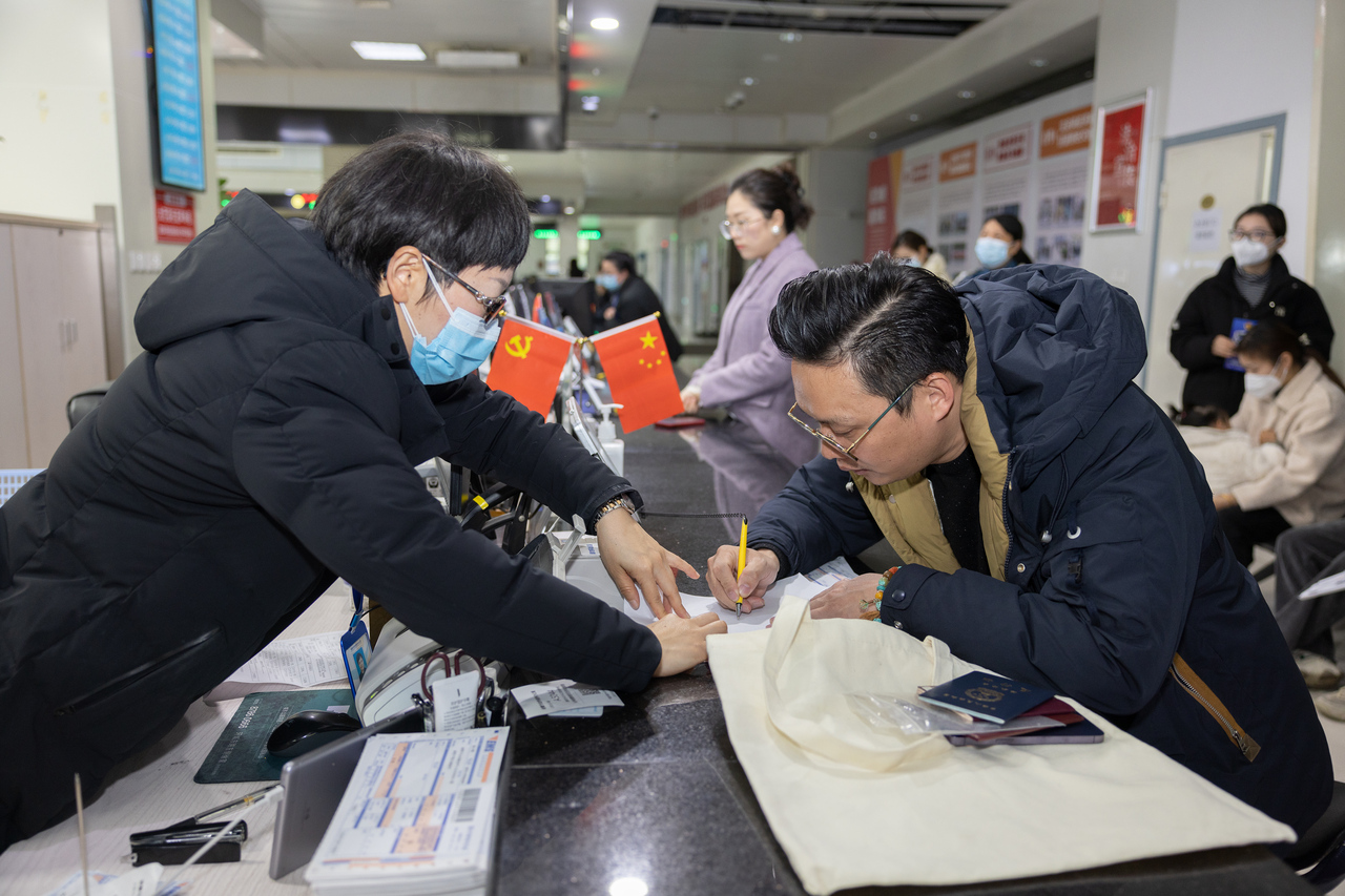 With the implementation of the new policies for exit and entry from China, the resumption of outbound group travel in Zhejiang is growing. The photos show that on February 9, 2023, people went through exit procedures at the exit and entry registration window of a local service centre in Zhuji, Shaoxing city.