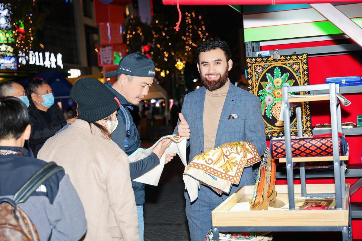"I brought more than 20 kinds of handmade tea sets, handicrafts, handmade carpets, and a lot of handmade ceramics from my country this time," said Asilbek Khonkhujaev, an exhibitor from Uzbekistan and an international student at Hangzhou Normal University.