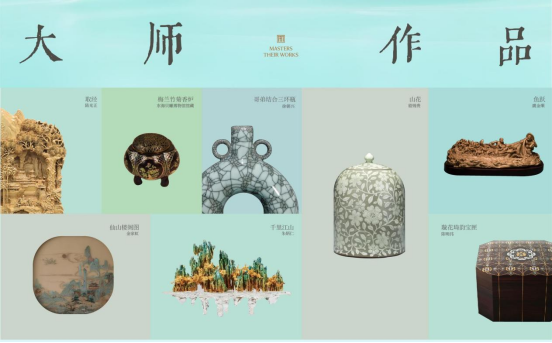 展览汇集12位国家级、省级非遗传承人及工艺美术大师的代表作。其中,亚太手工艺大师虞金顺(黄杨木雕《鱼跃》)、陆光正(东阳木雕《取经》)、嵇锡贵(越窑青瓷《山花》)、徐朝兴(龙泉青瓷《哥弟结合三环瓶》)等杰作领衔亮相。同时还展出国家级工美艺术大师陈明伟骨木镶嵌、朱炳仁铜雕、金家虹杭罗刺绣和省级工艺美术大师的十余件精品,实景呈现浙江传统工艺的源远流长。