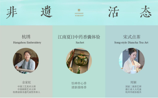 展区特设互动体验区,现场将特邀国家二级茶艺师周颖进行宋式点茶展演,使观众可亲身体验“七汤点茶法”古法技艺;国家级工艺美术大师、杭绣省级非遗代表性传承人金家虹将现场展示杭绣的分线、点绣等代表性技艺。除此之外,现场还准备了体验环节,观众可自行调配中药材制作江南夏日香囊,在视觉、触觉、嗅觉中感知文化脉动。