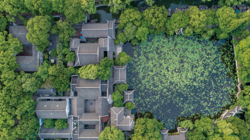 A panoramic aerial view of the Little Lotus Garden. Photo by Shen Yongqiang.