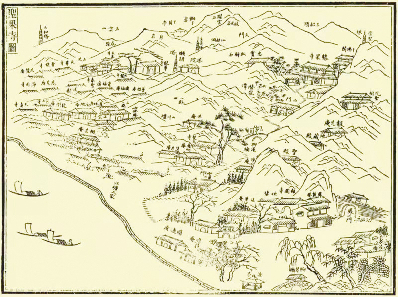 A map of the Shengguo Temple, according to the Annals of the Shengguo Temple in Phoenix Mountain (by Shi Chaoqian), published in 1881.