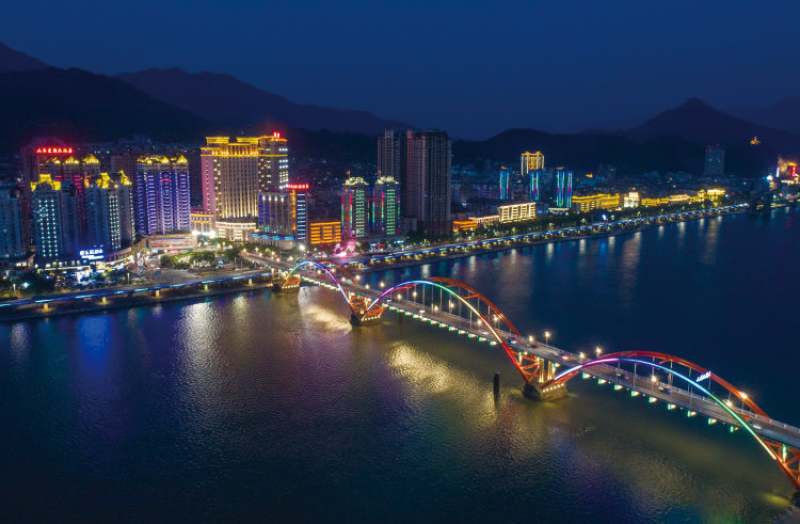 An aerial view of Qingtian county at night.