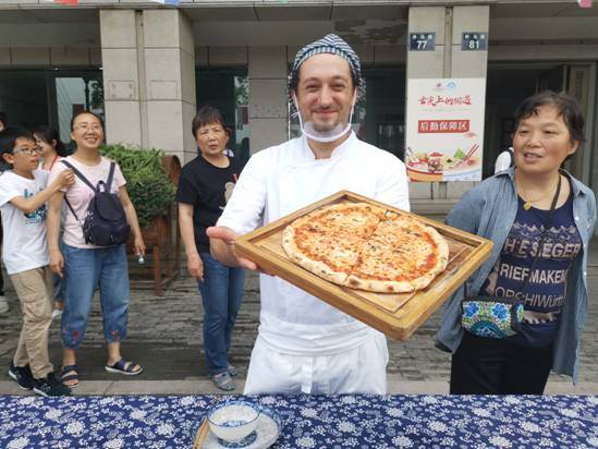 Photo taken by an In Zhejiang reporter shows the Italian chef proudly presenting the representative Italian cuisine: Margaret Pizza.