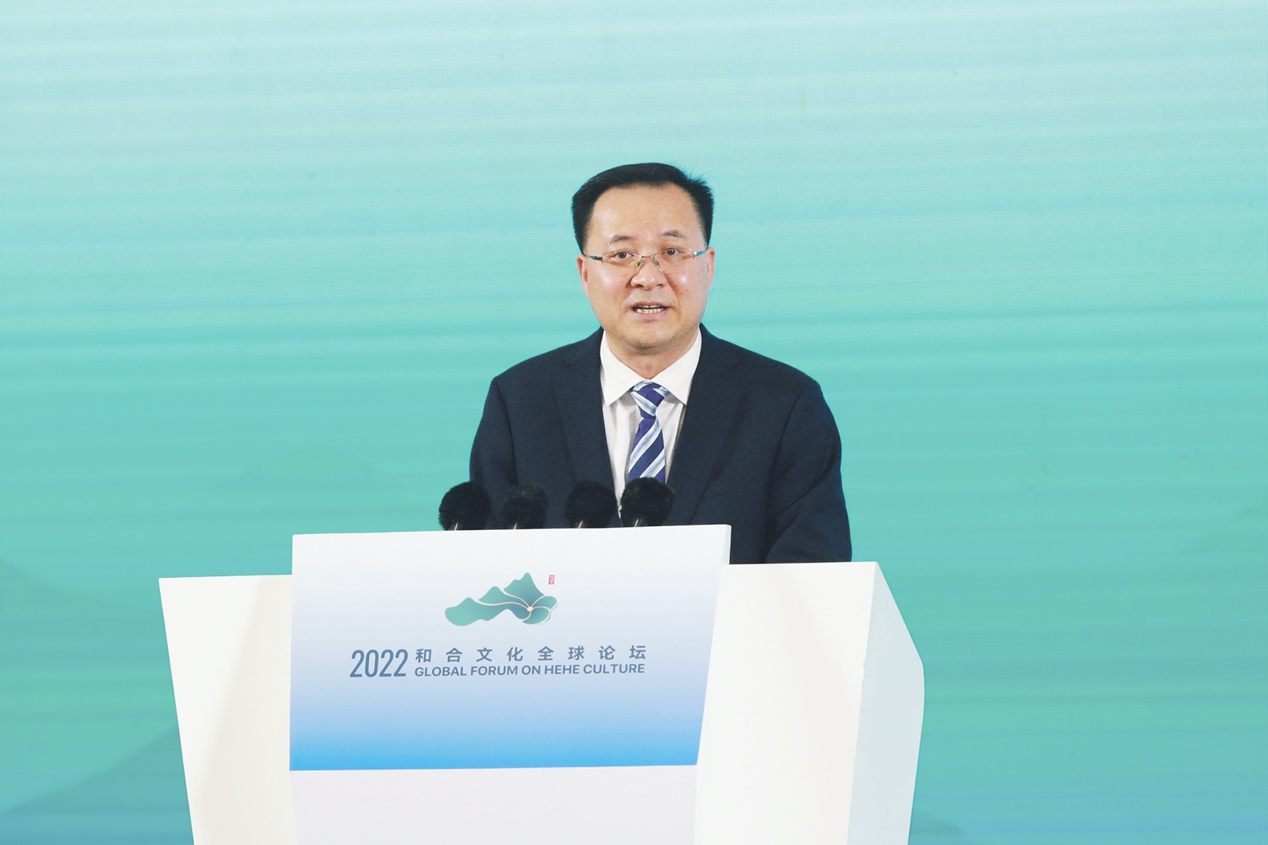 On 29 November, the 2022 Hehe Culture Global Forum was held in Tiantai County, Taizhou City, Zhejiang Province, in a combination of online and offline sessions. During the conference and keynote speeches, dignitaries from more than ten countries, including China, Japan, Korea, the Netherlands, Spain, Nepal and Indonesia, representatives of international organizations, foreign envoys to China, international sinologists, as well as relevant think tanks, universities, research institutions and other global celebrities, shared their views on the topic of "Culture of Harmony and Promotion of Common Development".