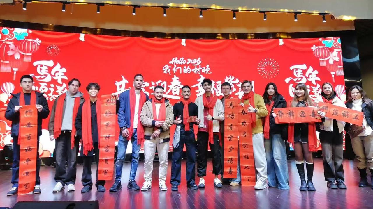近日,杭州余杭区中泰街道紫荆村灯火璀璨、笑语盈盈,“共富迎春·幸福紫荆”2026年农村村晚在浓郁的年味中温情上演。浙江外国语学院俄罗斯、越南、哈萨克斯坦、也门、摩洛哥、尼日利亚等10余个国家的留学生与当地村民同台献艺,呈现了一场洋溢着共富情怀、乡土特色与文化交融的新春晚会。
